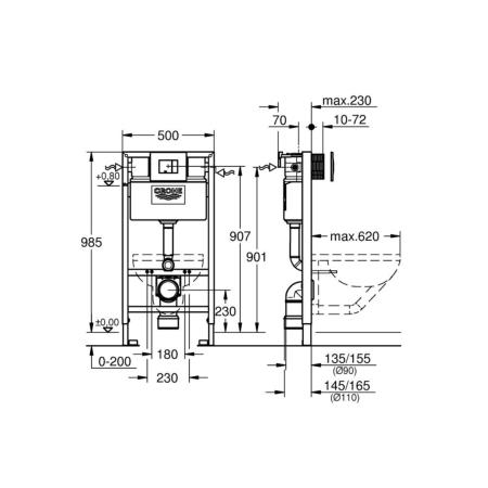 Grohe Rapid Sl Element For Wc 0 82 M Installation Height 38526000